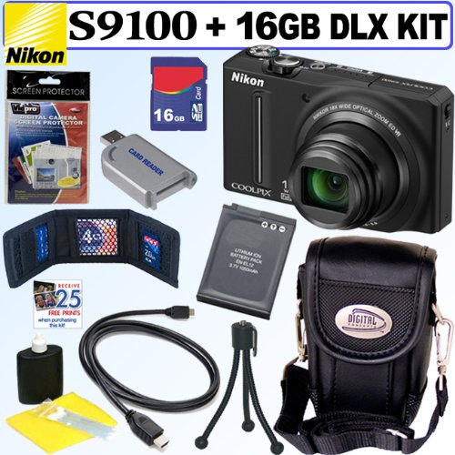 Nikon Coolpix S9100 12.1 MP CMOS Digital Camera (Black) + 16GB Deluxe